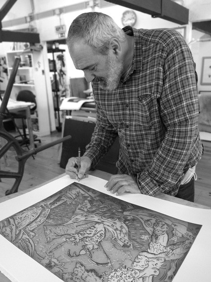 He is the eldest son of the Portuguese painter João Rodrigues Vieira and studied at the Escola Superior de Belas Artes in Lisbon. Mentor of the Ena Pá 2000, Corações de Atum and Irmãos Catita projects, he was born in 1962 in Lisbon. And this city is the main stage where the artist works, in areas as diverse as painting, music, cinema, politics or literature. Manuel João Vieira has a very strong theatrical and humorous component, which combines a critical and sharp personality towards society and its customs or characteristics.