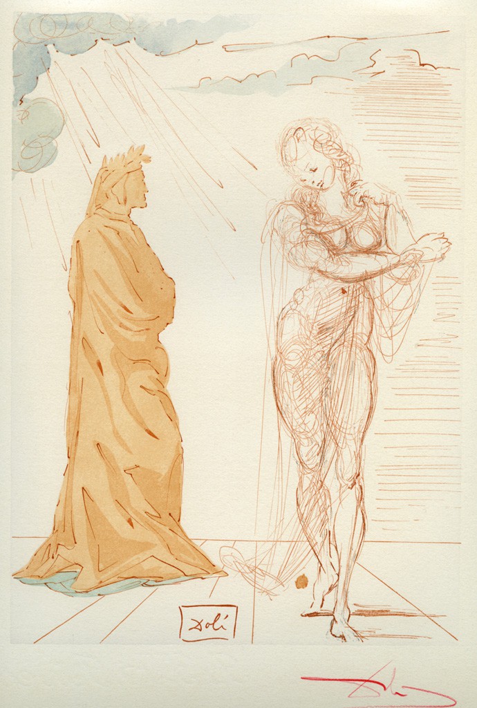 One of the 100 engravings illustrating «The Divine Comedy» by Dante Alighieri (1265-1321) presented in Paris at three different times: in 1960, the Inferno, in 1962, the Purgatory  in 1964, the Paradise.