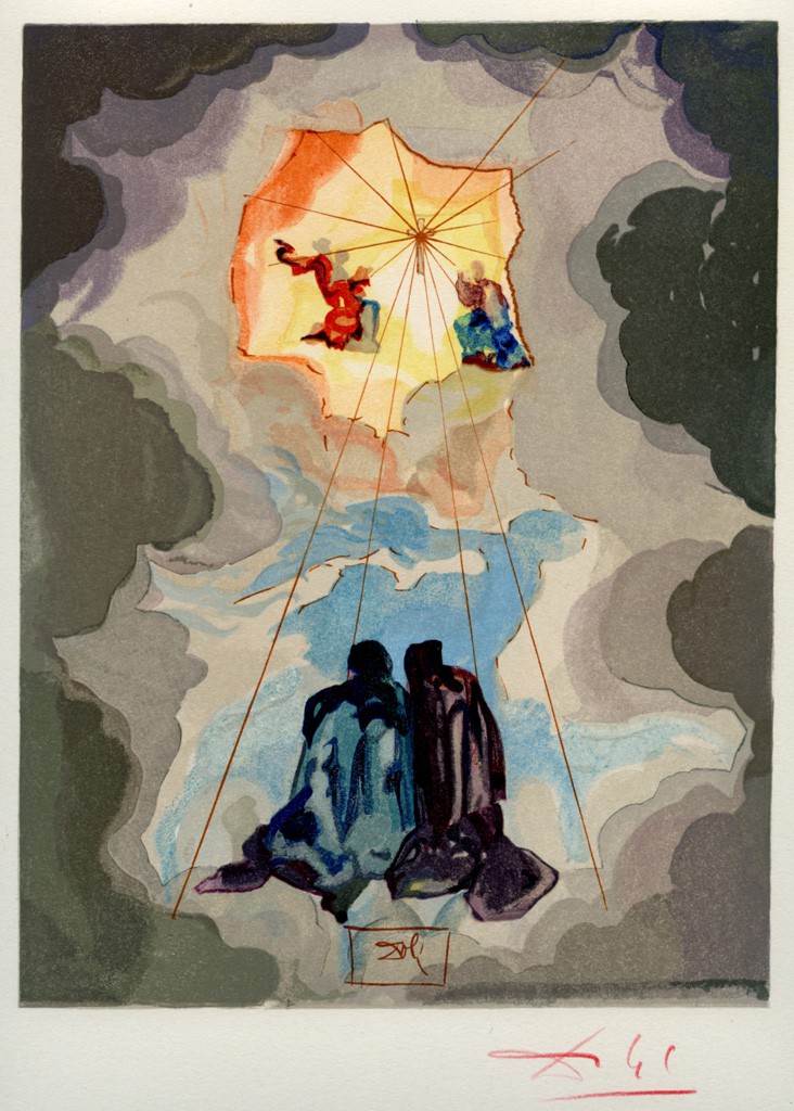 One of the 100 engravings illustrating «The Divine Comedy» by Dante Alighieri (1265-1321) presented in Paris at three different times: in 1960, the Inferno, in 1962, the Purgatory and in 1964, Paradise.