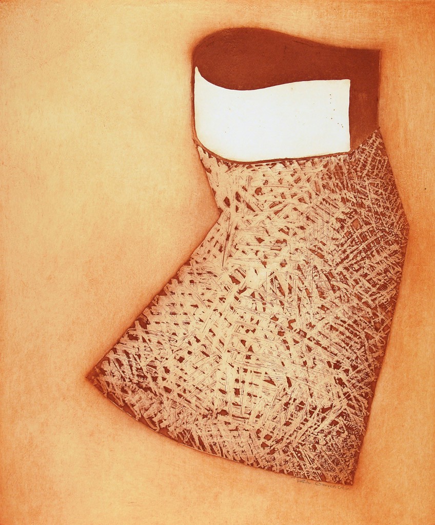 VIRTUAL ARCHITECTURES The compositions of sculptor and ceramist Paulo Óscar for engraving reveal the desire to guide design through regular structures inspired by geometry. Virtual architectures, inspired by his ceramic pieces, forms to make and undo according to the freedom and rhythms of creation. The intense color inhabits these purely mental spaces and transforms them into plastic icons of a very contemporary grammar of the relationships between the interior and exterior, equally evident in his piece in grés, “East”. Now in the terracotta “Fronteiras” is the spiral line that guides the relationship with space.