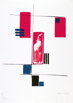The Seven States of Water The Portuguese Screen Printing Center, within the scope of the International Year of Water and in the context of the exhibition Impresso Múltiplas, presented this set of works by painter Manuel Carmo, whose title is: The Seven States of Water. Variations on an element that the artist, in a refined and synthetic language in contrasting reds and blues, links to very human experiences and expectations.