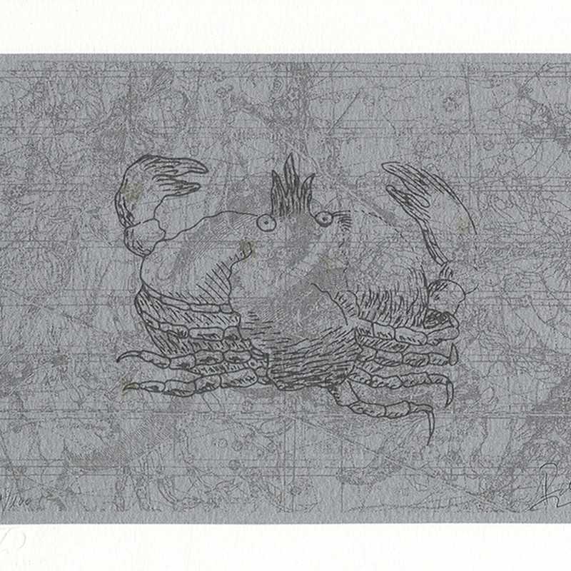 Based on an astronomical reference work, the Celeste Atlas by Flamsteed published in London in 1729, Pedro Martins presents each sign of the zodiac with the traditionally assigned color, regrouping across four distinct backgrounds, the elements of air, earth, water and fire.