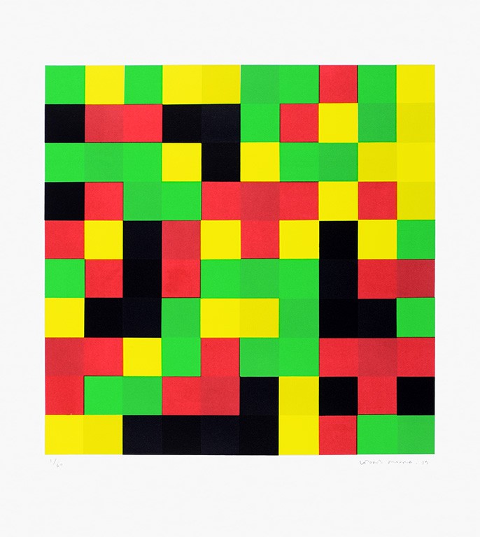 VOXEL is a multiple in screen printing with Augmented Reality, by the artist Leonel Moura, edited by CPS and with technology from NextReality.
