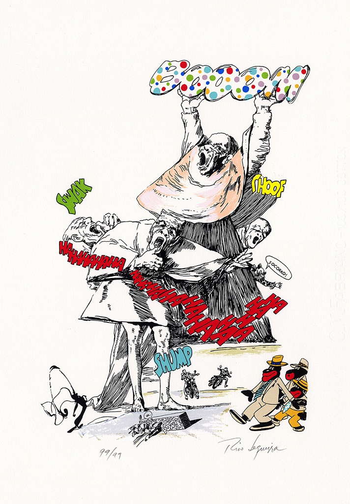The «Whiiims» collection establishes a contemporary approach to the famous engravings from the «Los Caprichos» by Goya where Rico Sequeira applied all his creative imagination, enhancing the chromatic virtues of the screen printing technique.