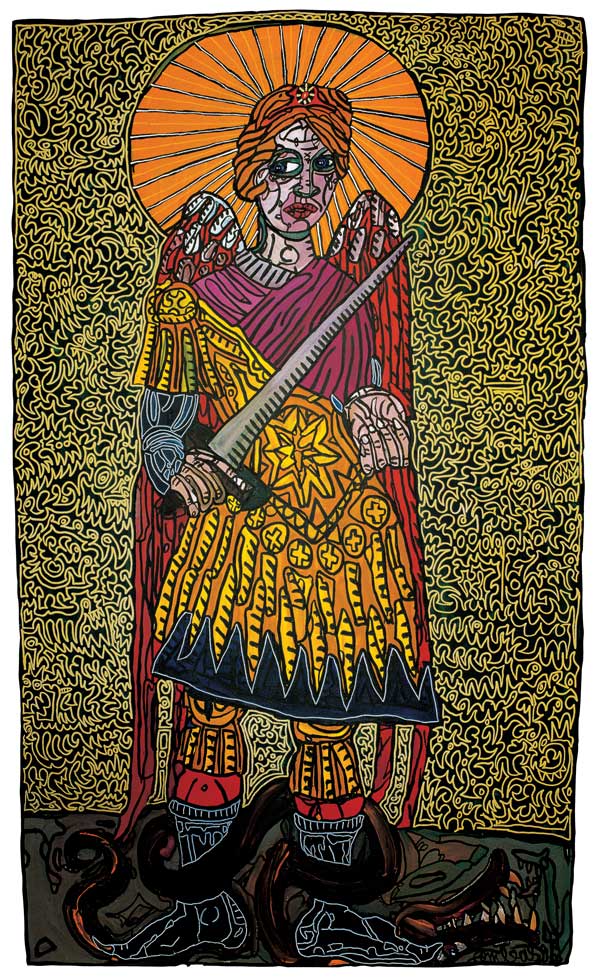 Robert Combas, “The Archangel – He who defeated the dragon of the Apocalypse and cast Lucifer to Earth”, 1995, acrylic on canvas, 210 × 127 cm