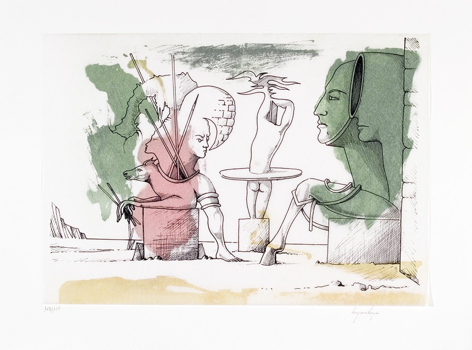 O universo inquietante e aventuroso de Cruzeiro Seixas, as suas formas compósitas e inquietantes, em metamorfose, entre o humano, o animal e o mundo dos objectos, está presente neste trabalho. O artista joga neste caso em simultâneo com as potencialidades da gravura e da serigrafia, de um modo muito original que tira partido da transferência do papel Japão.