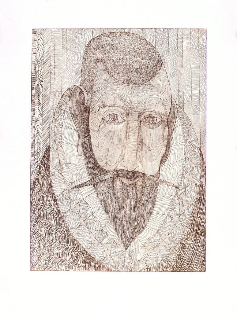 Na gravura ponta-seca dedicada a Cervantes de Andrés Alcántara, expoente da escultura espanhola, uma vez mais se revela o espírito de síntese do autor, bem visível no contraste entre o rigor e a minúcia do traço e da profundidade extática do olhar.