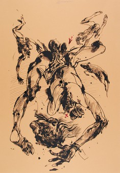 O AVESSO FANTÁSTICO DA REALIDADE Vladimir Velickovic artista sérvio radicado em Paris onde lecciona na Escola de Belas Artes, reconhecido internacionalmente como um nome marcante da arte do século XX, expõe individualmente desde 1963, no seu país de origem e em algumas das mais destacadas galerias europeias. A sua obra pode inserir-se numa linha de contemporâneo expressionismo fantástico, catarsis de medos e de fantasmas ancestrais. Nem Bosch fazedor de prodígios fascinantes e perturbadores, nem Goya ou Bocklin e as suas visões de premonitório terror, nem os seus pares na modernidade e no desencanto, como Francis Bacon, chegaram tão longe e tão fundo no retrato do negrume de uma condição humana despossuída do sopro divino original que a resgata e transfigura. O pintor explica ele mesmo as motivações íntimas da sua arte: “sempre pintei o que o homem é capaz de fazer ao homem”, uma arte onde vemos desfilar cenas de tortura e de terror, intensamente envolvidas em paisagens sombrias, ardentes, avesso fantástico da atroz realidade de que quotidianamente somos passivas testemunhas.