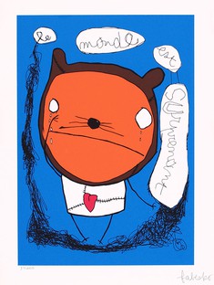 A obra de Fabesko, na poesia de suas cores vivas e ardentes, viaja no espaço, físico e mental, da infância, do mundo encantado das fábulas e dos super-heróis, documentado na atual serigrafia para o caos citadino entre fragmentos de cenas e personagens de uma comédia sem tempo, onde também nos situamos. Universo lúdico e terno, satírico e meio inocente.