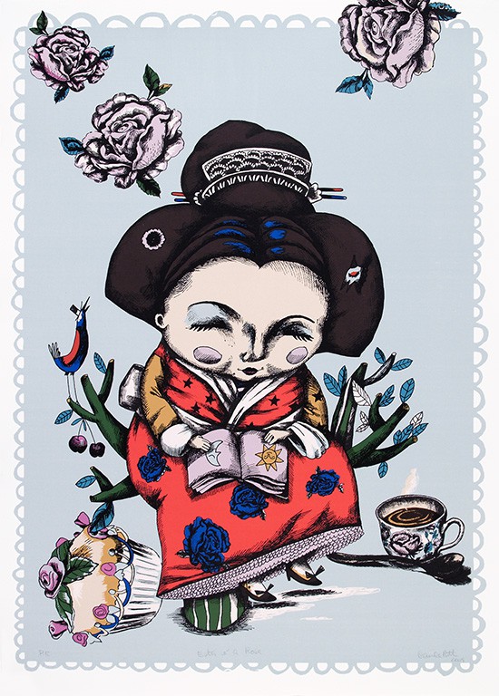 PRIMAVERA DA ALMA Os expressivos trabalhos de Carla Pott são ilustrações possíveis para histórias de duendes e fadas madrinhas, jogando com escalas inventadas, histórias e imagens susceptíveis de agradarem às crianças e aos adultos que trazem a infância no coração. Como a figurinha feminina oriental que associa à leitura a Primavera da alma e as rosas de uma alegria inventada.