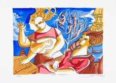 RITUAIS DO QUOTIDIANO O artista brasileiro e internacional Jayr Peny, numa linguagem de grande modernidade, na depuração das suas formas, sob o impulso da linha, e na síntese das suas cores que apostam em contrastes e visam ao mesmo tempo a harmonia, recriou o bem conhecido filão das ninfas com uma linguagem sem preconceitos que prefere a robustez e uma certa androginia à tradicional e por vezes insípida delicadeza dessas figuras, verdadeiro enxame, nos infinitos corredores da história de arte.