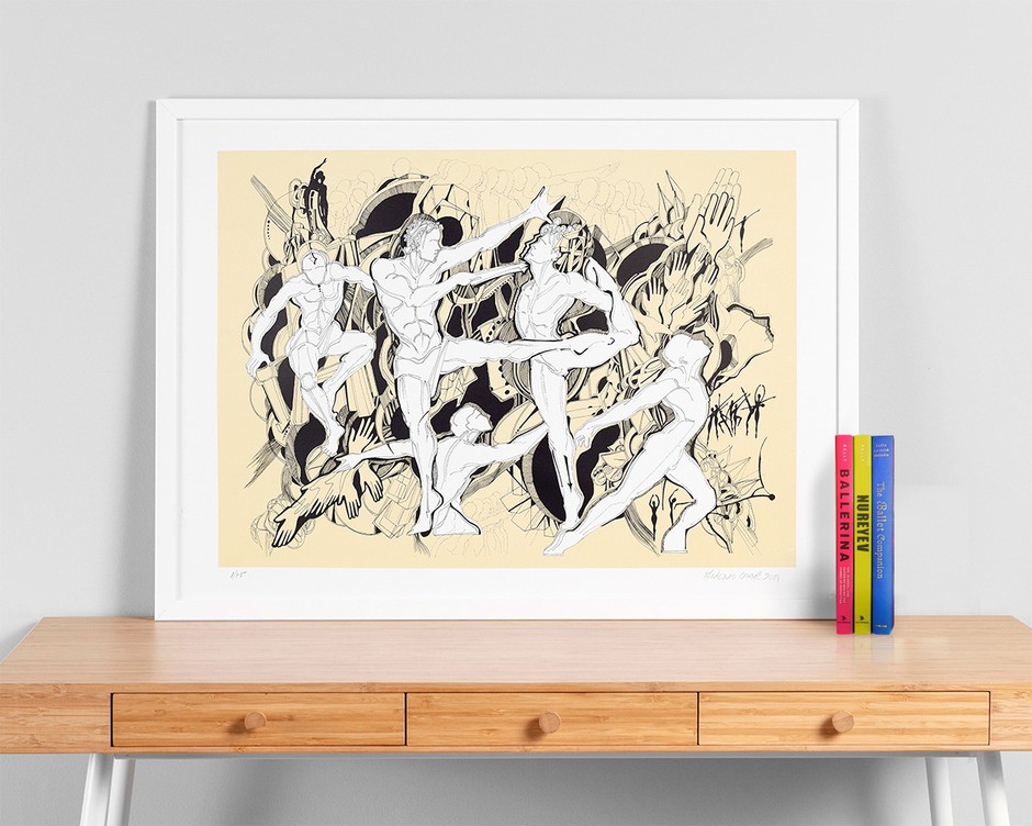 Serigrafia de António Carmo com a participação especial de António Casalinho, jovem prodígio do ballet clássico a quem a obra é dedicada e que também a assina.
